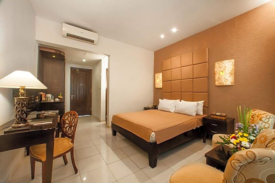 This large, air-conditioned room has a balcony with a garden view. It features a seating area with a flat-screen cable TV. There is a tea and coffee maker and a mini-bar. The private bathroom has a shower and free toiletries.